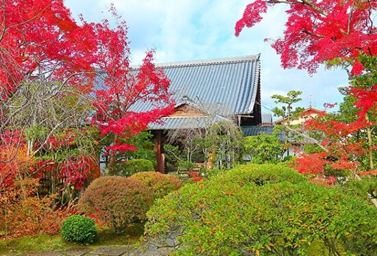 等持院は妙心寺から東に徒歩10分程度の場所にある、足利尊氏ゆかりの寺院です。観光客が比較的少なく、静かに庭園を楽しめる穴場スポットとして知られています。東西二つの池を中心とした池泉回遊式庭園は美しく、特に秋の紅葉が見事です。書院からゆっくり庭園を眺めながら過ごす時間は、混雑を避けて京都を楽しみたい方にぴったりです。足利将軍の木像が安置されている霊光殿も歴史的価値が高く、歴史好きの方にはたまらない場所です。