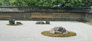 世界遺産の龍安寺は、仁和寺からさらに南に徒歩10分ほどの場所にあります。「龍安寺の石庭」として世界的に有名な枯山水庭園は、15個の石が配置されたシンプルながら深遠な美しさを持つ庭園です。どの位置から見ても15個全てを同時に見ることができないという不思議な配置になっており、禅の思想を体現した傑作として知られています。天球院で華やかな金碧画の襖絵を楽しんだ後、龍安寺でミニマルな美の世界に触れることで、日本美術の幅広さを感じることができます。鏡容池を中心とした池泉回遊式庭園も美しく、四季折々の景色を楽しめます。特に紅葉の季節は格別の美しさです。
